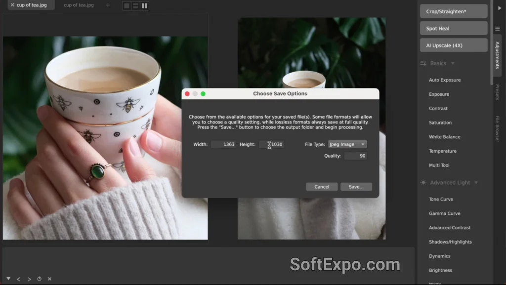 This feature is particularly valuable for photographers who need to salvage aggressive crops. If you crop a landscape photo significantly to focus on a distant subject, the remaining resolution might be too low for a quality print. AI Upscale can restore the necessary pixel count to produce a sharp physical print. It is also highly effective for digital artists working with older, low-resolution assets or anime stills, where the AI can smooth out artifacts and generate clean lines at modern display resolutions.