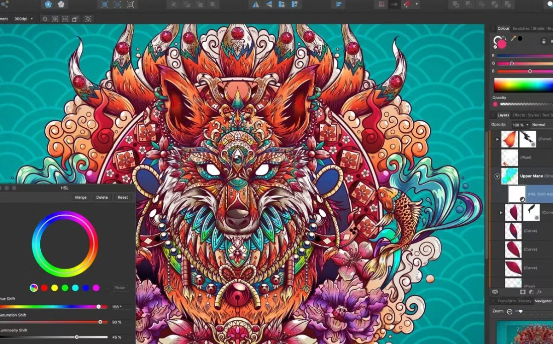 - Persona Switching: Instantly toggle between the Vector Persona for crisp line work and the Pixel Persona for applying raster textures and brush strokes without ever leaving the document.