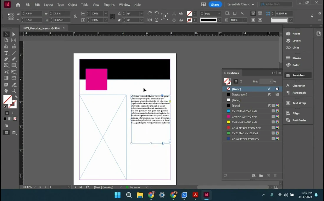 Professional layout creation and text manipulation
