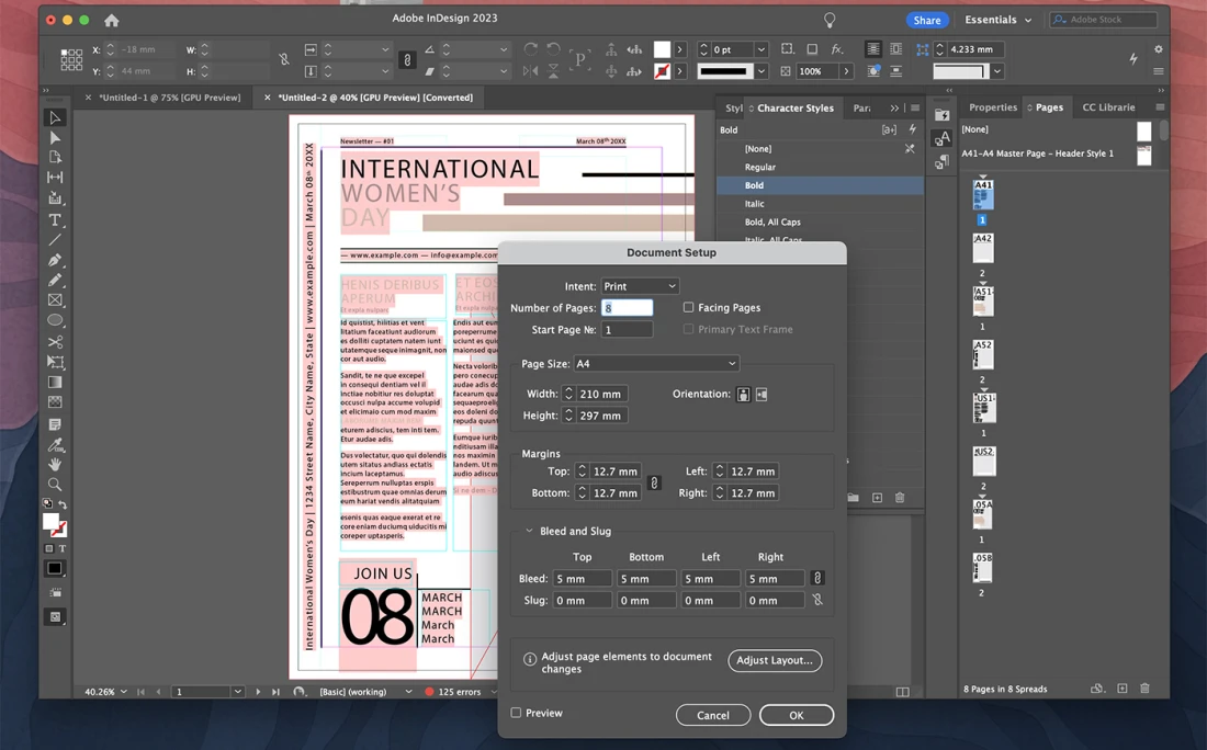 Create pages with multiple columns and stylish graphics, tables, and formatting.