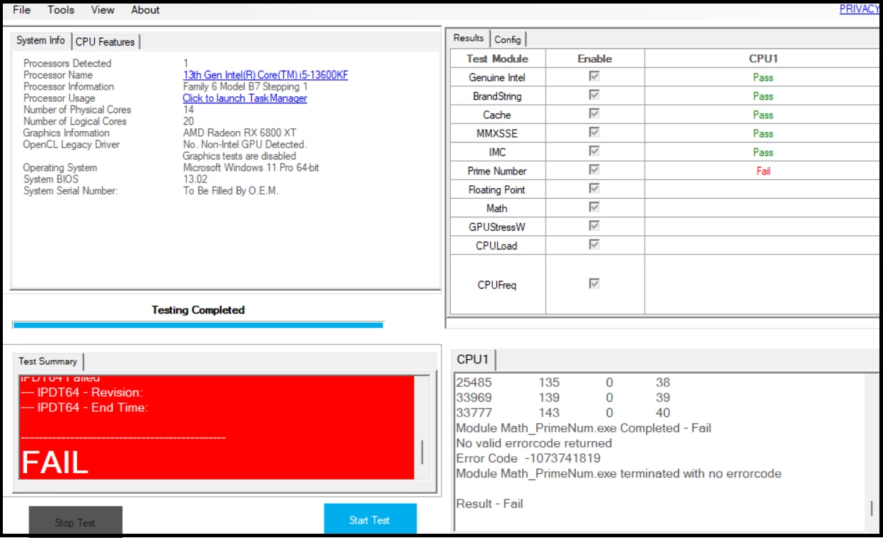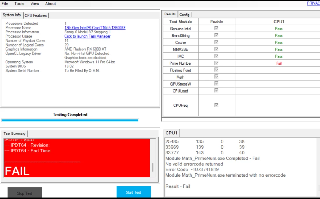 - Math & Floating Point Stress Tests: Executes complex calculations, including prime number generation, to push the arithmetic logic units (ALUs) to their limits and expose calculation errors under load.