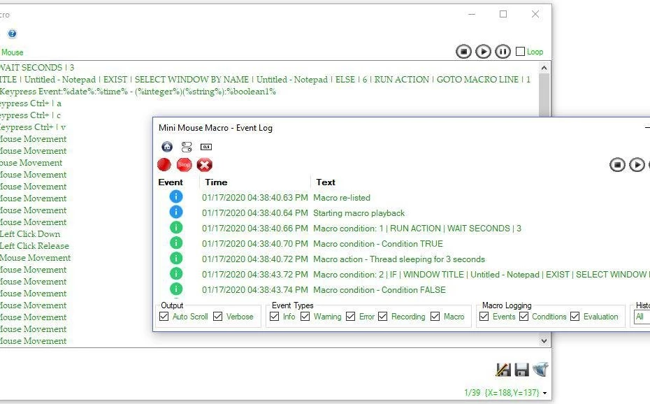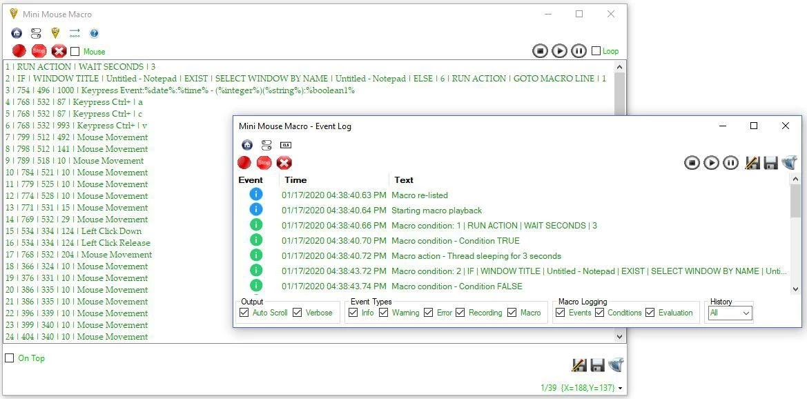 - Advanced Script Editor: Allows users to fine-tune recorded macros by editing individual entries, adding conditional logic (IF/THEN statements), and utilizing variables like %RANDOM% or %INTEGER% for dynamic playback.