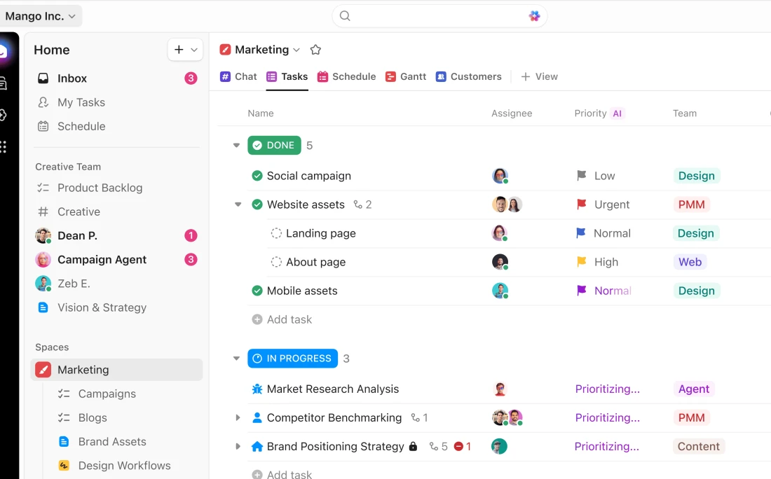 - ClickUp Super Agents: These personalized AI assistants automate repetitive background work, generate meeting summaries, draft document replies, and auto-classify task types based on ongoing context.