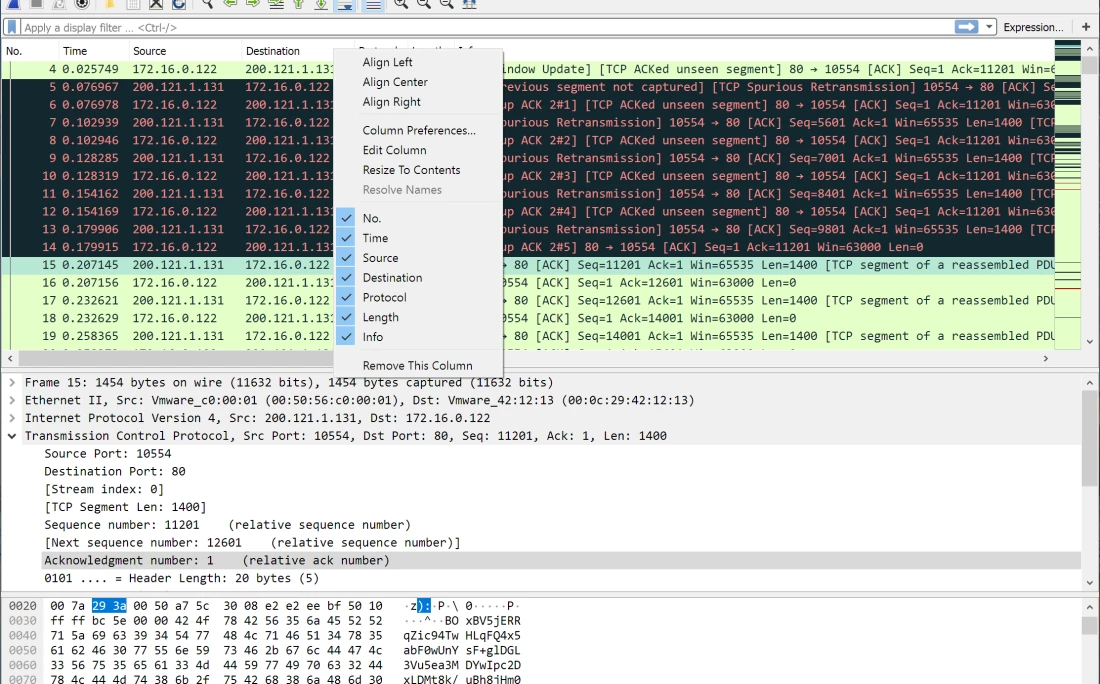 - Custom Column Expressions: Enables users to create custom data columns using arithmetic calculations, raw byte displays, or logical tests to tailor the packet list view to specific analysis needs.