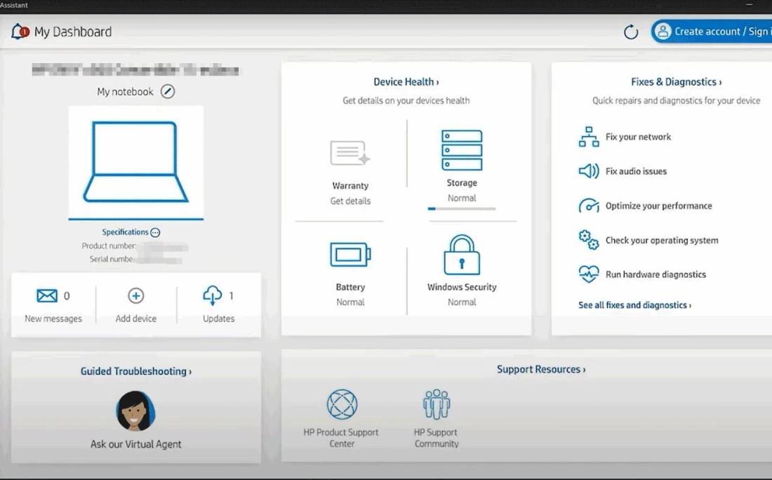 - HP Virtual Agent: Integrates an intelligent chat interface that guides users through step-by-step solutions for specific hardware issues or escalates complex problems to human support agents.