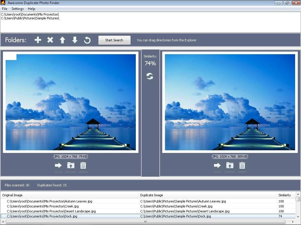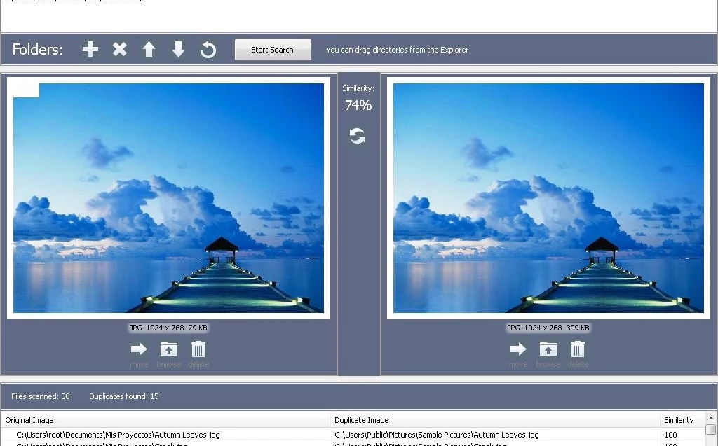 - Side-by-Side Comparison: Presents potential duplicates in a dual-pane window, allowing users to visually verify images before deciding which version to keep or delete.